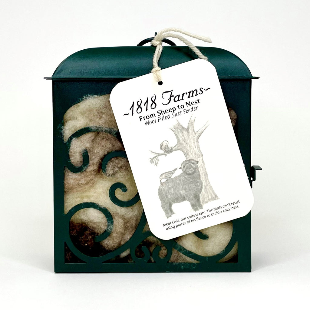 From Sheep to Nest...... Birds will enjoy pulling tufts of our sheep's wool from this decorative suet feeder to build a cozy nest. The soft wool provides a warm place for adult birds to rest and a cushion for their eggs.