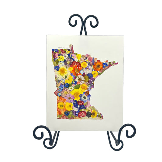The "Where I Bloom" Collection invites you to embrace your roots and showcase your love for the state that holds a special place in your heart. Our unique collection of state-shaped products, featuring imagery of our farm grown and pressed flowers, is a celebration of home, pride, and personal identity. We hope these Minnesota themed pieces help you celebrate the place where you Bloom.