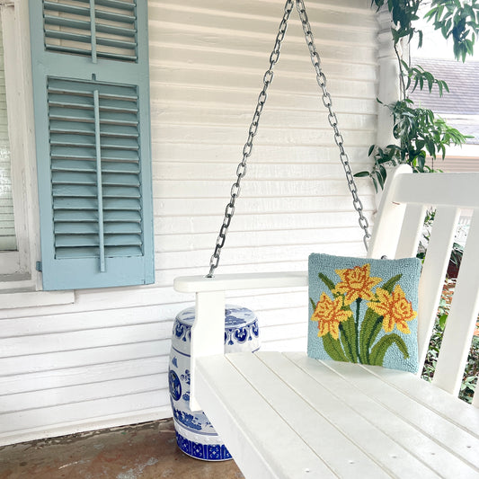 Daffodil Wool Hooked Pillow