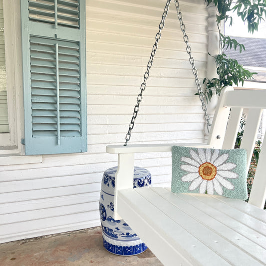 Sold outWhite Daisy Wool Hooked Pillow