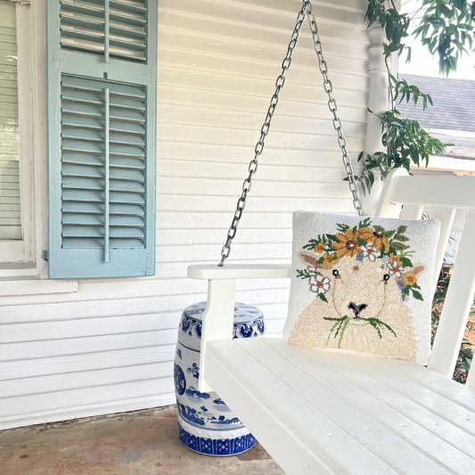 Daisy Wool Hooked Pillow