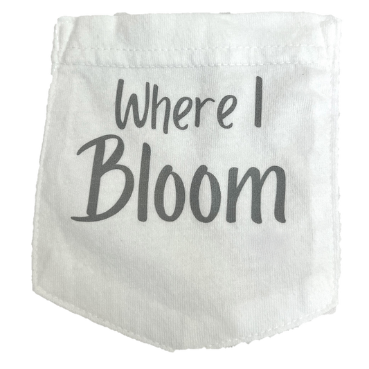 The “Where I Bloom” logo and appropriate state abbreviation are included on the front pocket.