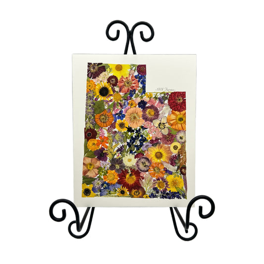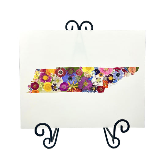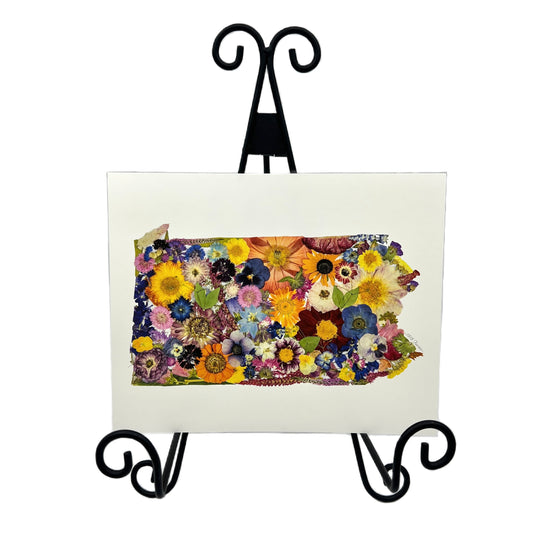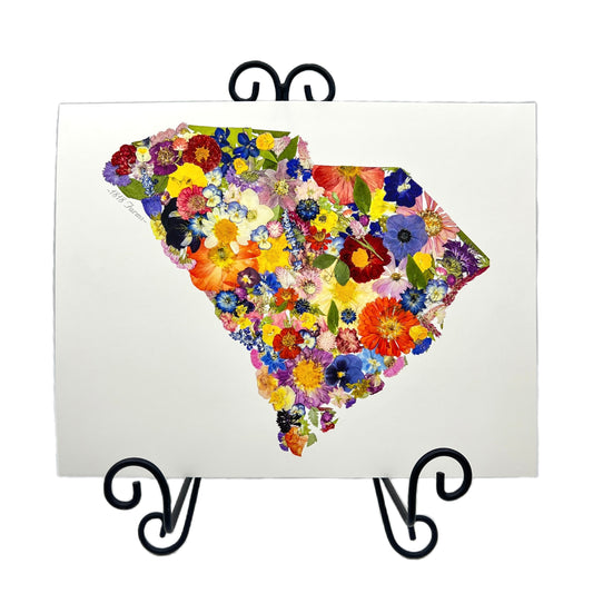 Enjoy this beautiful, high-resolution image of our farm grown pressed flowers anywhere! Brighten your home with a unique array of colors. Each state includes a wide selection of flowers and foliage grown, harvested, pressed, and artfully designed at our family farm in Alabama. Available in three sizes: 8" x 10", 11" x 14", and 16" x 20".