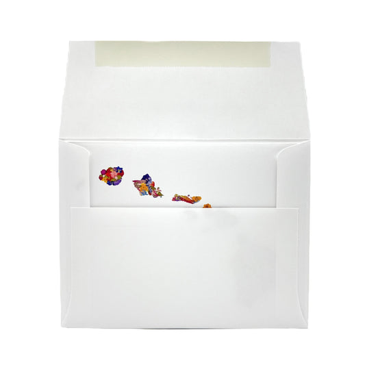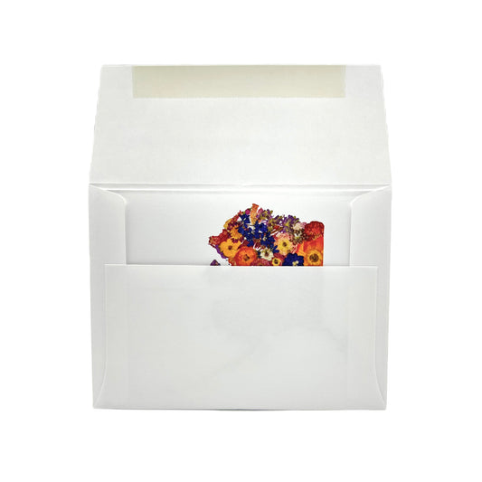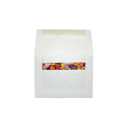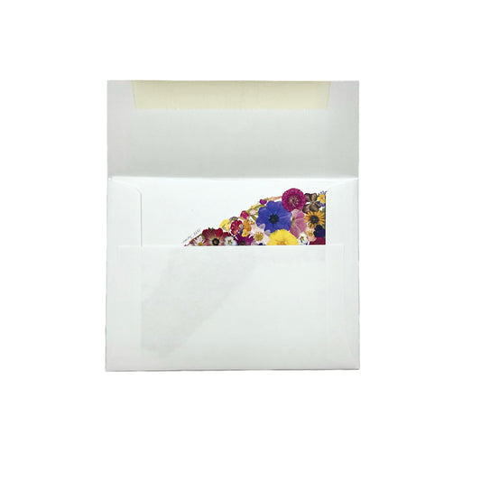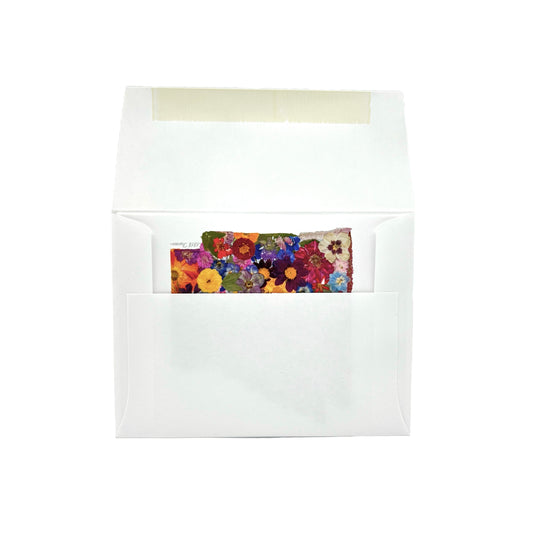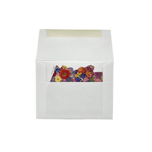 Set of 6 cards with envelopes. Sealed in reclosable crystal clear sleeve. Folded size 4.25” x 5.5”.