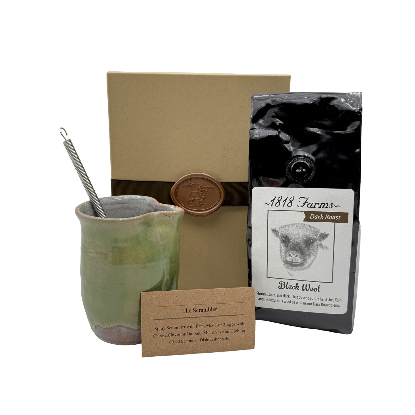 The “Breakfast with Dad” Gift Box is perfect for the dad on-the-go. This box combines two morning essentials: gourmet coffee and our handcrafted Egg Scrambler. This duo will become a staple in his morning routine, guaranteeing a delicious start to everyday. This gift is packaged in a sturdy telescoping box and finished with a brown ribbon with a wax seal.