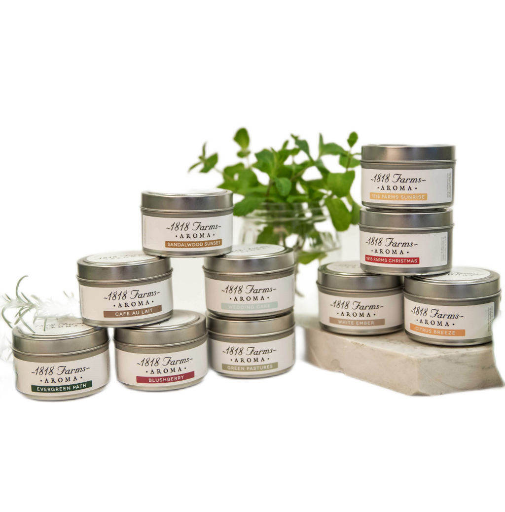 1818 Farms Aroma, our line of Coconut Wax Blend Candles, are designed to bring your favorite scents of 1818 Farms into your home.  We chose coconut wax for our candles due to its natural properties, long, clean burn times, as well as excellent scent throw.