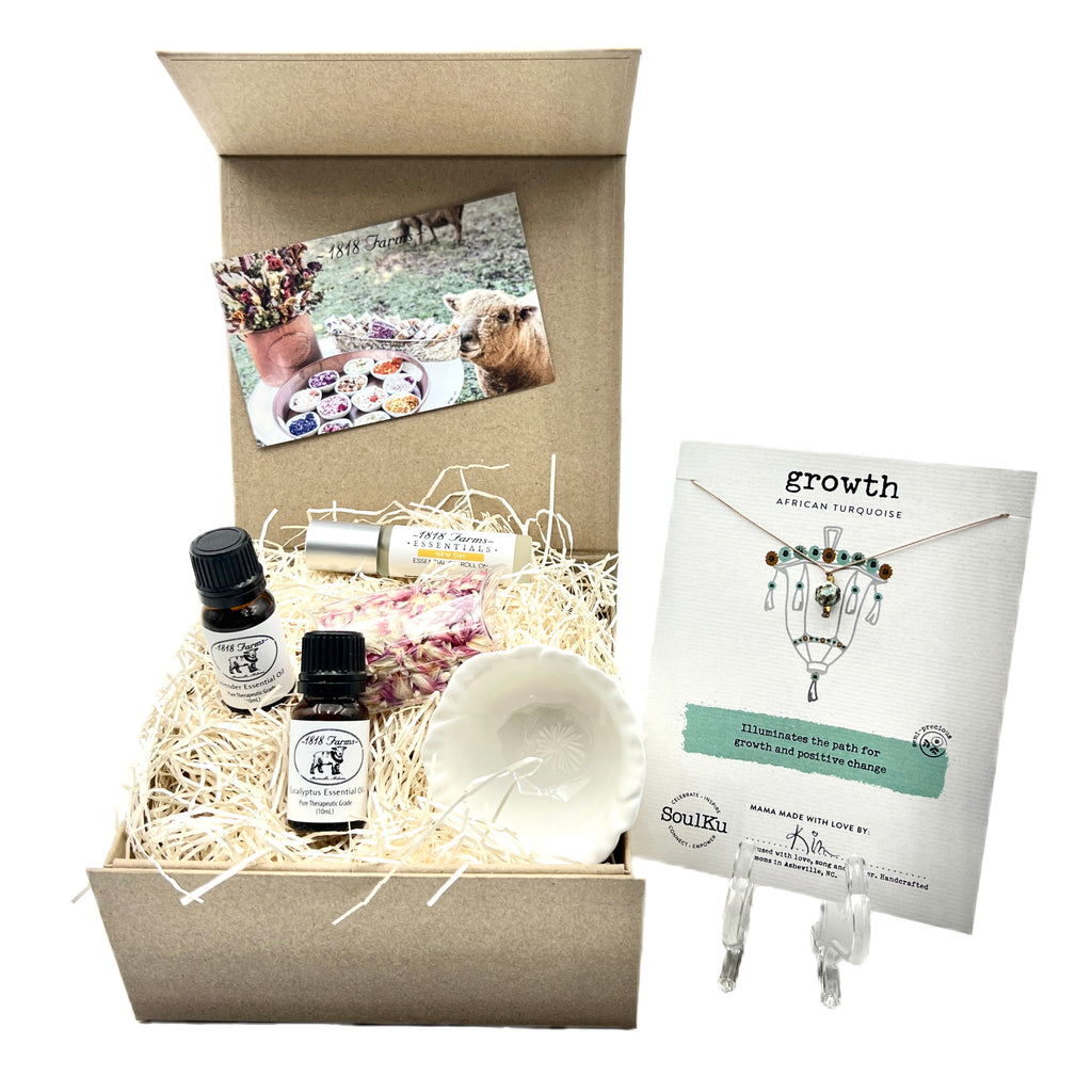 Celebrate each New Day! This gift is the perfect way to send your support and best wishes to someone who is heading off to college, moving to a new place, or embarking on a new journey. It’s a New Day Gift Box hits all the marks for your favorite adventurer or brave soul. Bring freshness to any space with our farm-grown Dried Flower Confetti and Essential Oils. The Essential Oil Roll On in New Day scent is perfect for on the go use, and the handcrafted necklace can be worn as a lovely reminder of your care and support.