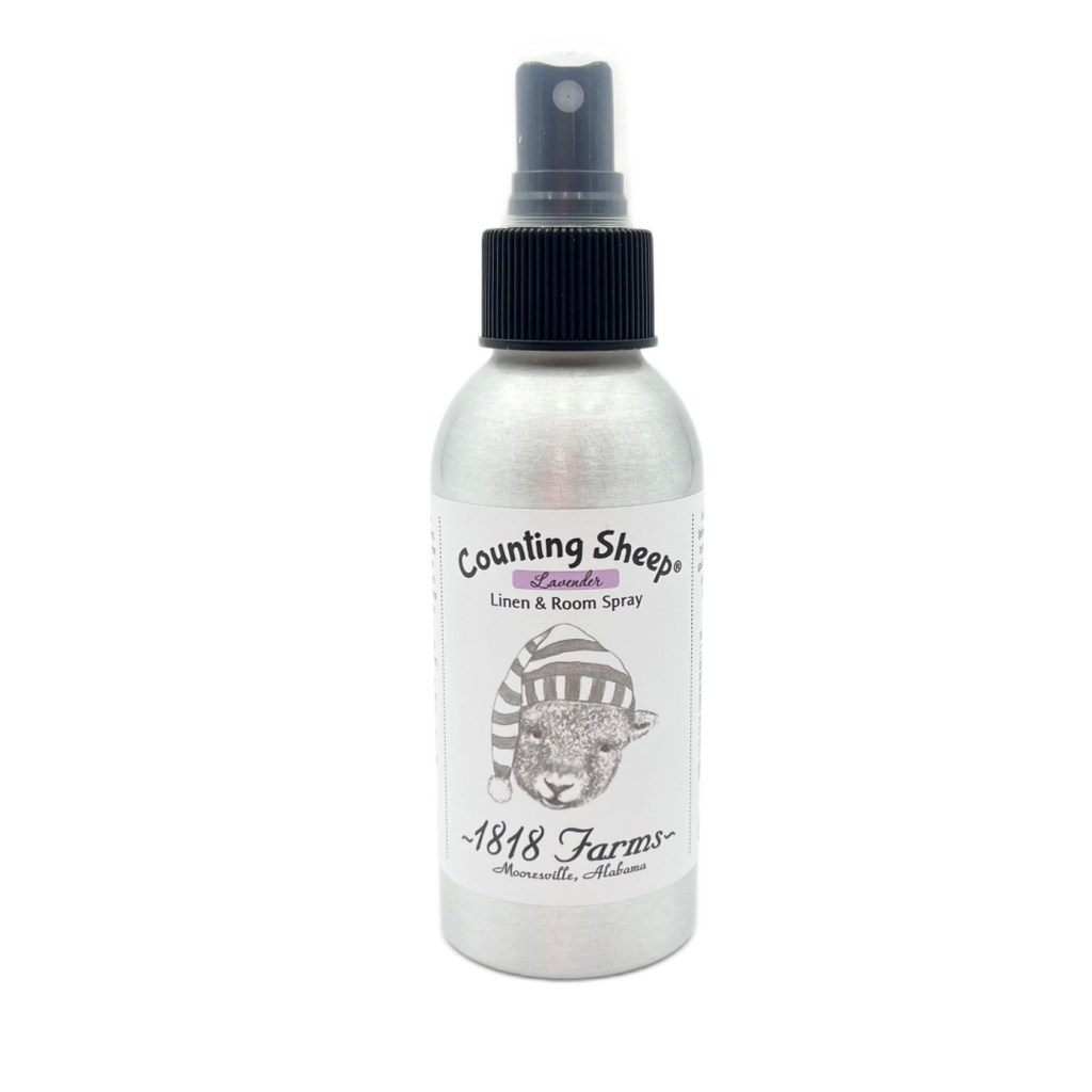 Counting Sheep is the perfect linen spray to use before bedtime or a well-deserved rest. Our gentle sheep, Sugar, is the Cover-Girl for the Counting Sheep Linen and Room Spray. She has the sweetest, woolliest face of any of the sheep at 1818 Farms. Sugar promises to help soothe your senses with the sweet smell of lavender when you use her spray.
