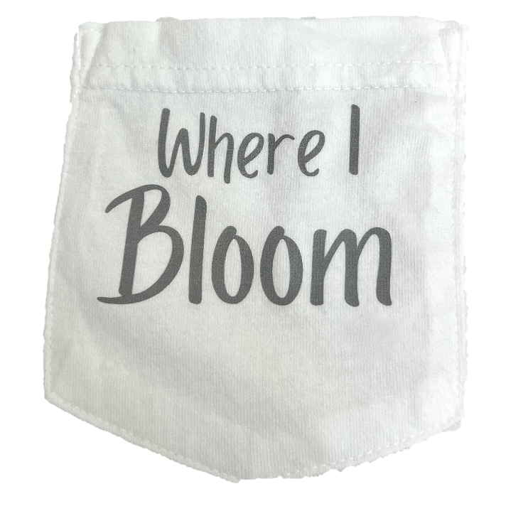 The “Where I Bloom” logo and appropriate state abbreviation are included on the front pocket.