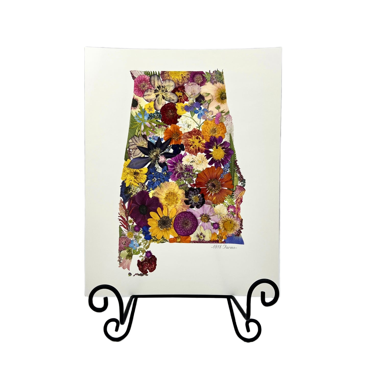 Enjoy this beautiful, high-resolution image of our farm grown pressed flowers anywhere! Brighten your home with a unique array of colors. Each state includes a wide selection of flowers and foliage grown, harveted, pressed, and artfully designed at our family farm in Alabama.