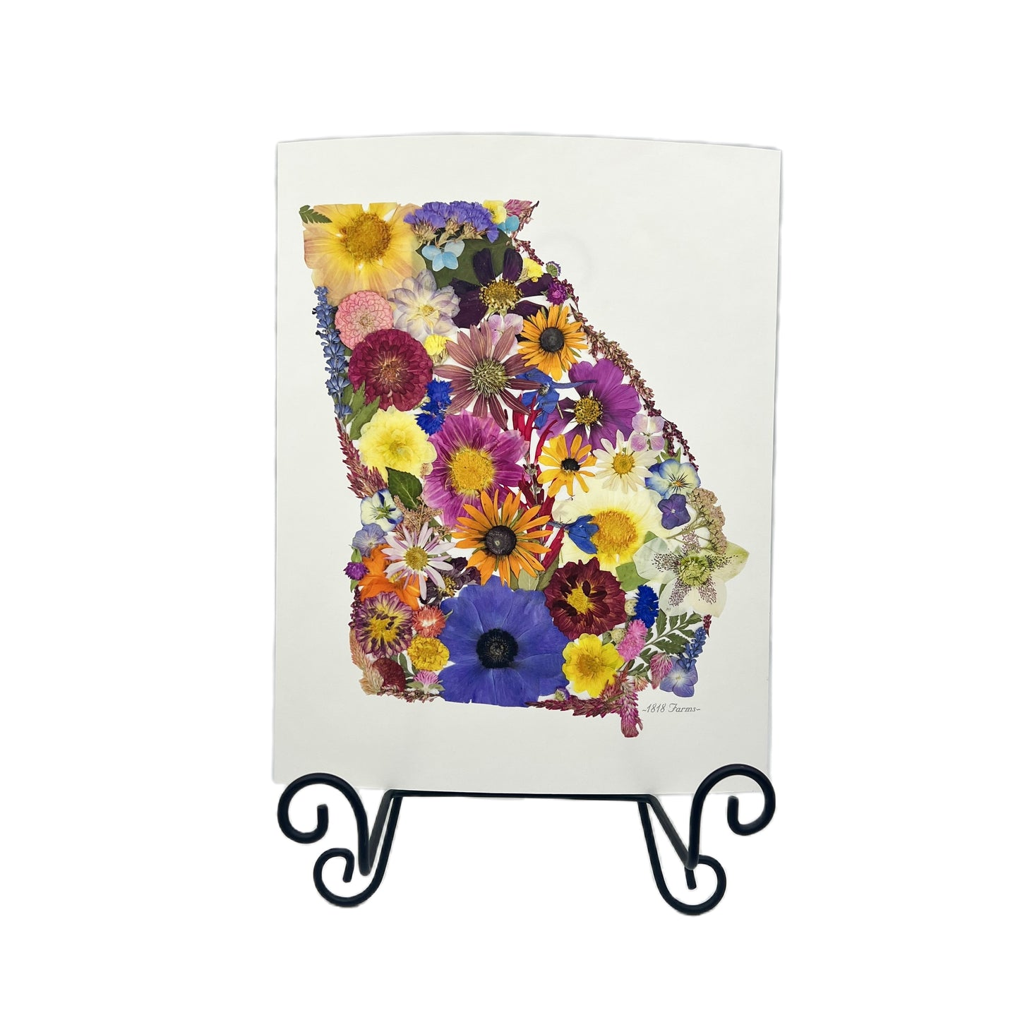 Enjoy this beautiful, high-resolution image of our farm grown pressed flowers anywhere! Brighten your home with a unique array of colors. Each state includes a wide selection of flowers and foliage grown, harveted, pressed, and artfully designed at our family farm in Alabama.